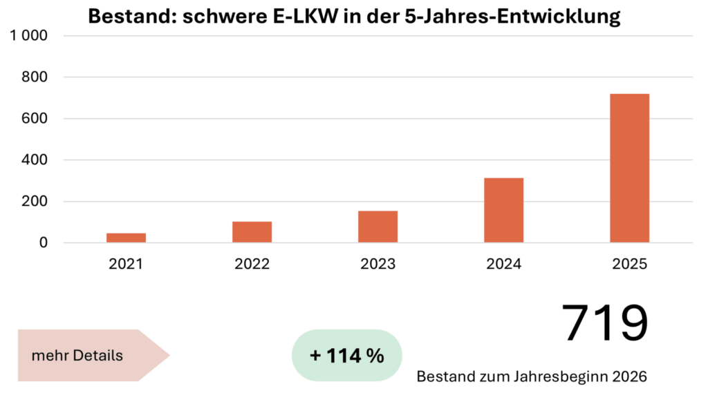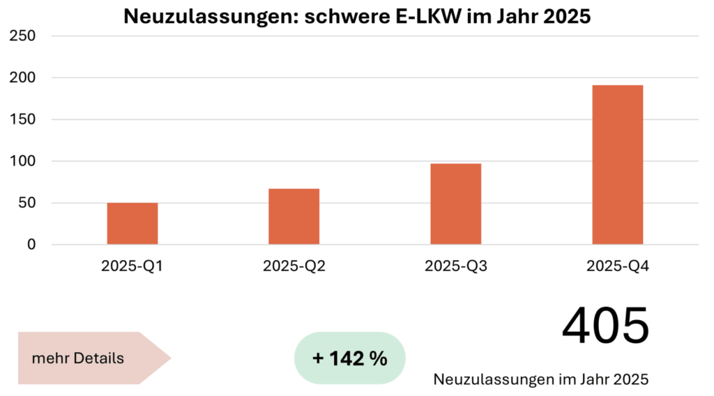 5,9 % emissionsfreier Neuzulassungsanteil – davon fast ausschließlich batterieelektrisch betriebene E-LKW – sind mehr als eine Vervierfachung im Vergleich zum Vorjahr. Mit weit mehr als 700 schweren E-LKW auf Österreichs Straßen starten wir in 2026 in ein Jahr, dass den emissionsfreien Güterverkehr auf der Straße allgegenwärtig machen wird.