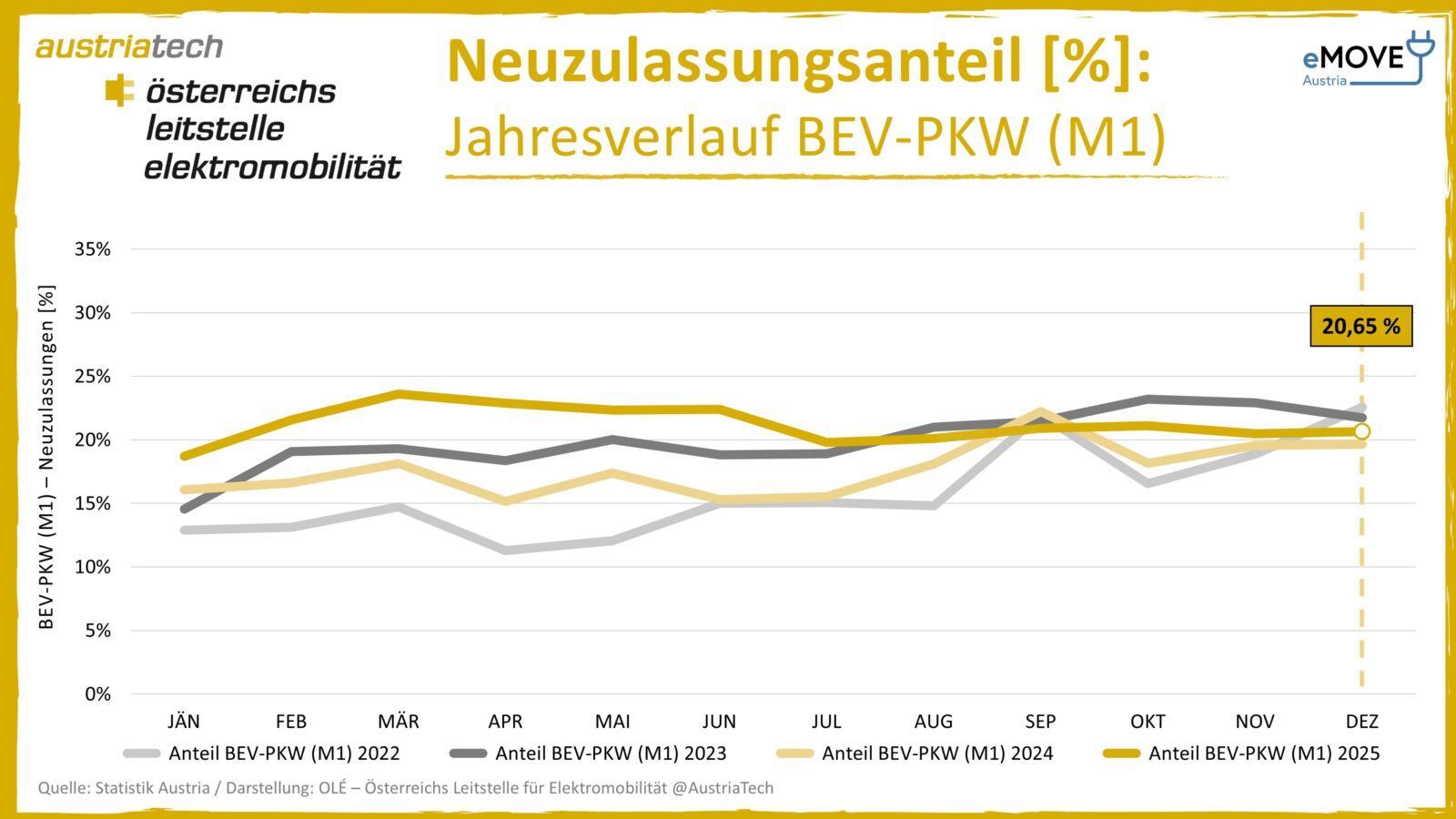 Österreich startet mit einer Reihe starker Meilensteine in das Jahr 2026 und bestätigt damit seine Rolle als einer der dynamischsten E-Mobilitätsmärkte Europas. Sowohl bei Fahrzeugbestand und Neuzulassungen als auch beim Ausbau der Ladeinfrastruktur wurden 2025 neue Rekordwerte erreicht, die eine belastbare Basis für das weitere Wachstum schaffen.